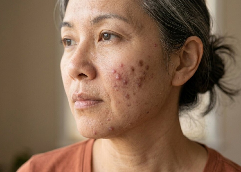 Adult acne is more common in women due to hormonal influences; in fact, some women get adult-onset acne during menopause. Acne can be a side effect of some medications and may be caused by certain medical conditions.