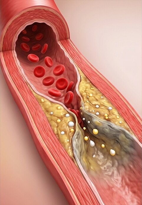 Angina is chest pain or discomfort that occurs when a portion of the heart does not receive enough oxygen-rich blood. It usually occurs due to coronary artery disease (CAD). If you have CAD, an artery (or more than one artery) becomes partially blocked with plaque, a waxy substance that can occlude arteries and block blood flow. High cholesterol can influence plaque formation, and high blood pressure can damage arteries, making them stiffer and less pliable, and thus less able to allow blood to flow freely. When plaque builds up, a clot can form, which can increase your risk of having a myocardial infarction (heart attack) if a clot happens to occlude an artery, completely blocking the flow of blood in the affected artery.