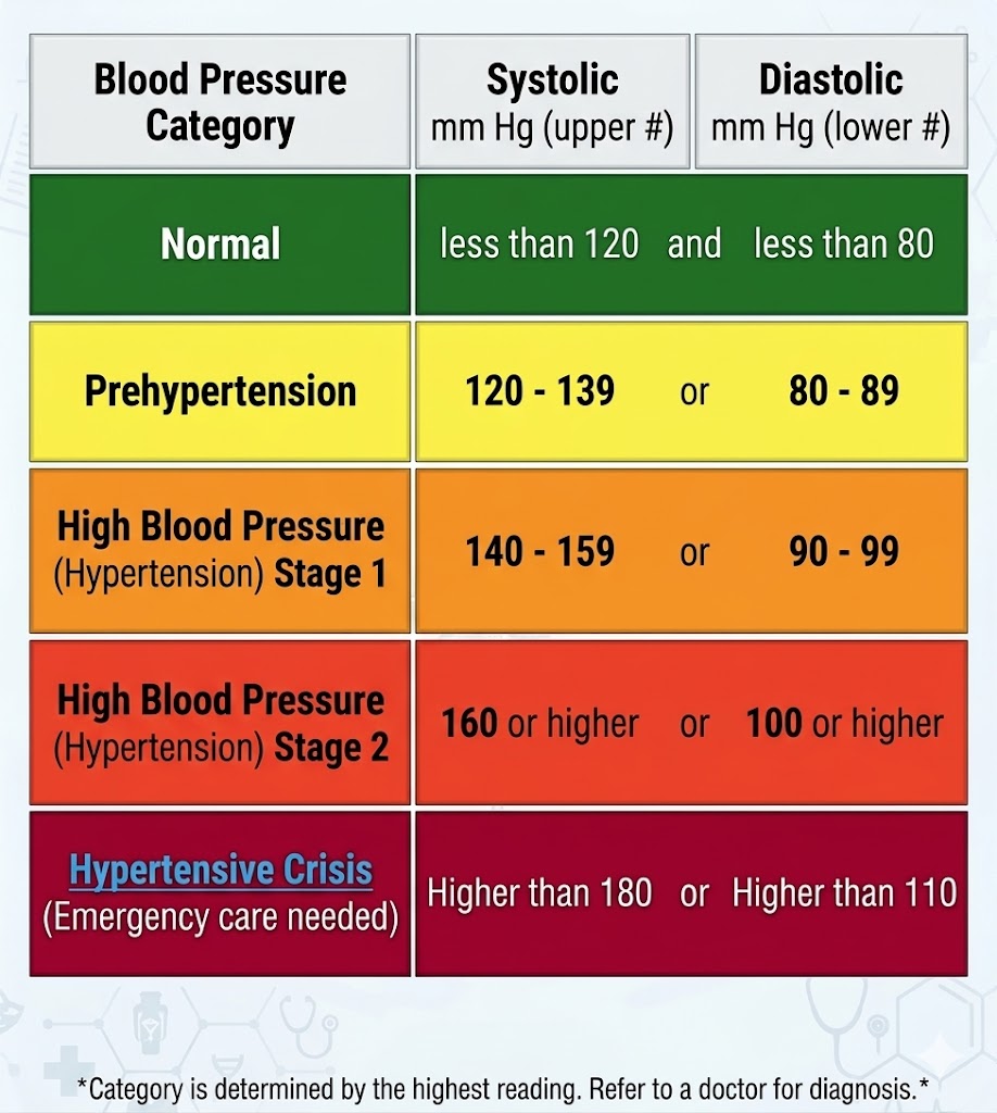 Hypertension is a term used to describe high blood pressure. As indicated in this chart, “normal” blood pressure is defined as systolic and diastolic pressure less that 120 and 80, respectively. Pre-hypertension is the range of blood pressure above normal, but still not high enough to be considered Hypertension Stage 1: