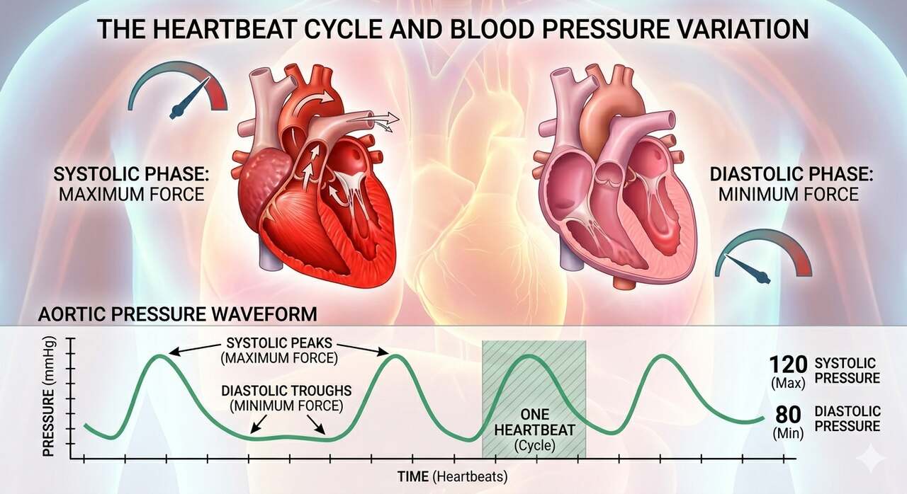 In simplest terms, blood pressure is the force of circulating blood against the walls of arteries. (Arteries are the vessels that carry blood away from your heart to supply the rest of your body with oxygenated blood.) During each heartbeat, blood pressure varies between a maximum (systolic) and a minimum (diastolic) amount of force.