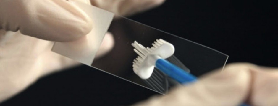 To start, I will examine the outer genitalia for any abnormalities. I will then insert a lubricated speculum into the vagina. The speculum is an instrument with a light attached that allows the physician to view the inner vagina and cervix. A small brush is then inserted into the vagina up to the opening of the cervix and a small sample is collected. A second sample is collected from the area surrounding the cervix. The samples are applied to glass slides and a fixative is sprayed so that the cells can be viewed under a microscope.
