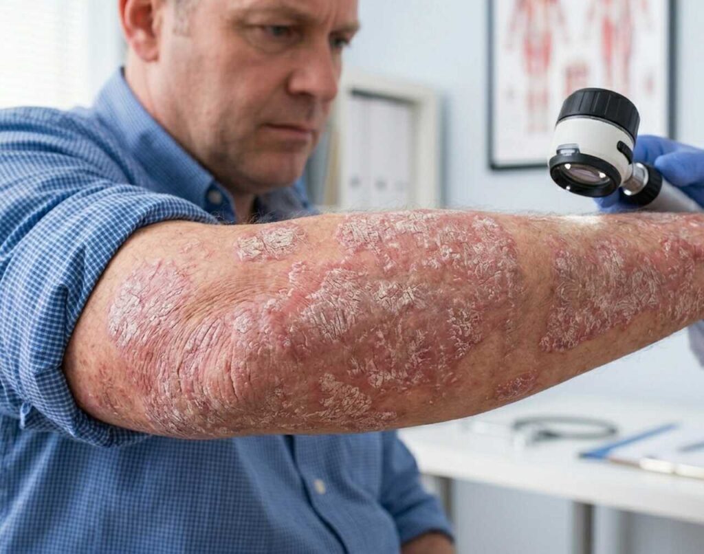 “Psoriasis symptoms can be mild and more of a nuisance than anything, or it may be severe and disabling. It can also be a major cosmetic concern. If you think you may have psoriasis, treatment is available to improve your symptoms and the appearance of your skin”.